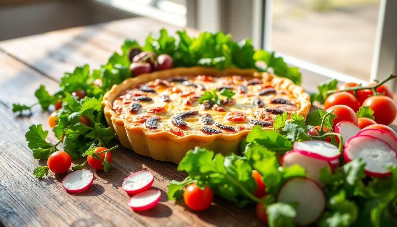 - Poêlées de légumes : Une poêlée de légumes de saison, telle que des champignons sautés à l’ail, peut apporter une texture intéressante et un goût umami qui s’accorde parfaitement avec la quiche.