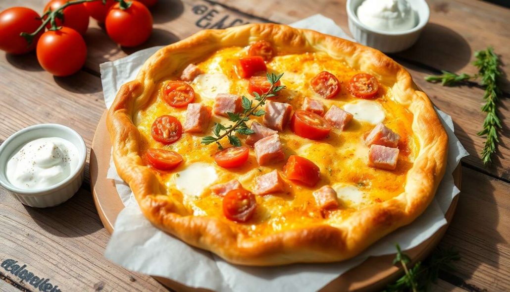 La quiche au jambon, tomates et brie est un classique réconfortant de la cuisine française. Facile à réaliser, elle allie la douceur du brie à la fraîcheur des tomates et au goût savoureux du jambon. Parfaite pour un dîner en famille ou un déjeuner entre amis, cette quiche saura ravir vos papilles et celles de vos convives.