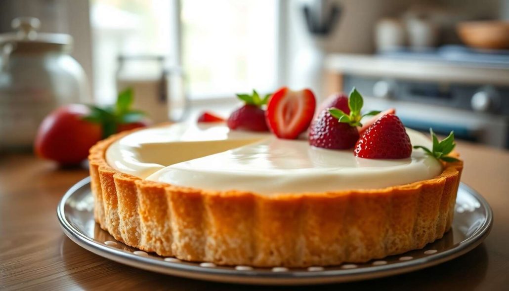 Placez le moule au réfrigérateur pour raffermir la croûte pendant que vous préparez la panna cotta.